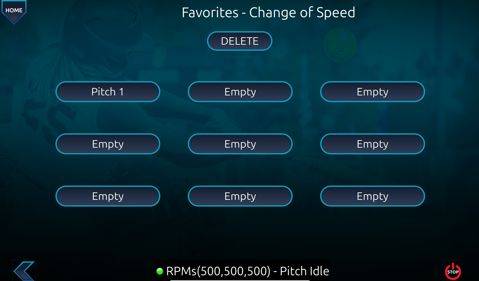 • Save up to 12 “Change of Speed” favorites and up to 12 “Breaking Pitches” favorites.