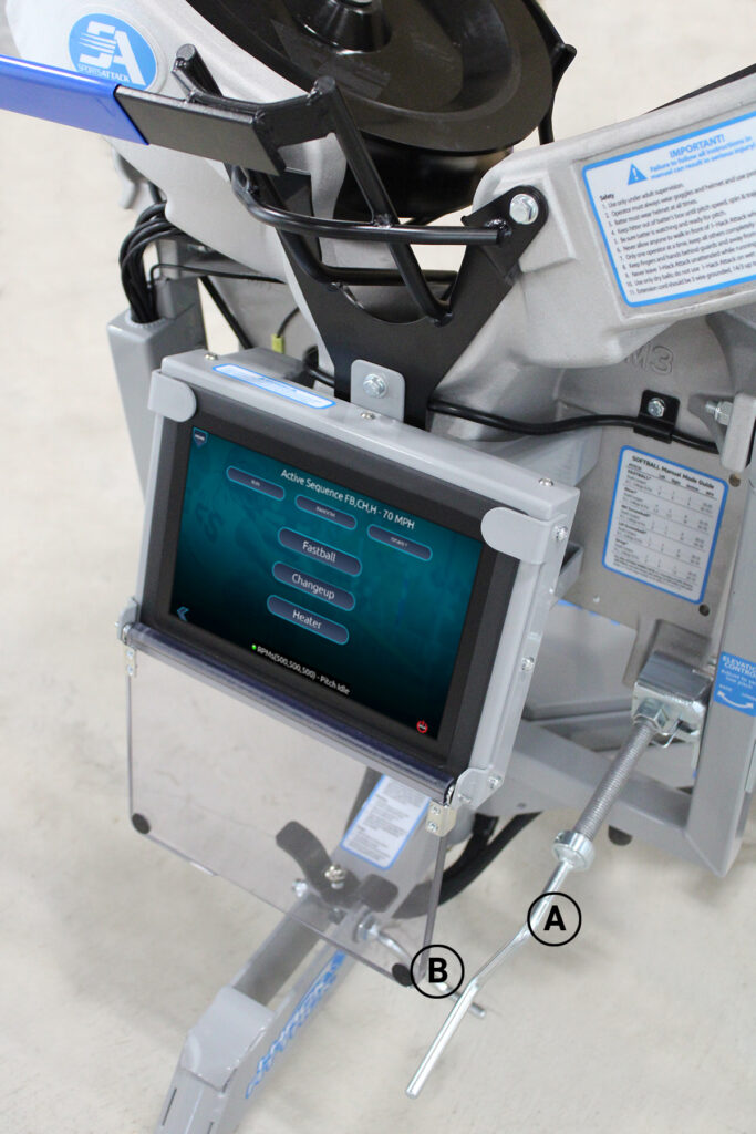 • Using touch screen, quickly go between eight different pre-set pitches and pre-set defensive drills.