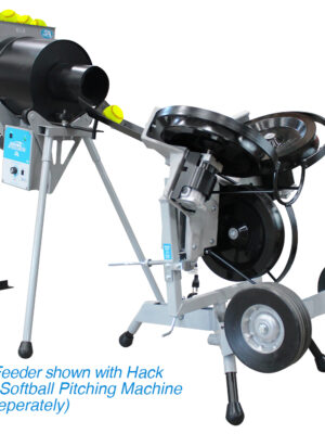 The ever popular 75 ball capacity Team Feeder has a new design plus added features! Will feed a softball into the I-Hack Attack and Hack Attack at variable speeds (6 to12 seconds or so) for continuous hitting time of 20 minutes.