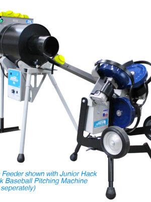 The ever popular 75 ball capacity Team Feeder has a new design plus added features! Will feed a softball into the Junior Hack Attack at variable speeds (6 to12 seconds or so) for continuous hitting time of 20 minutes.