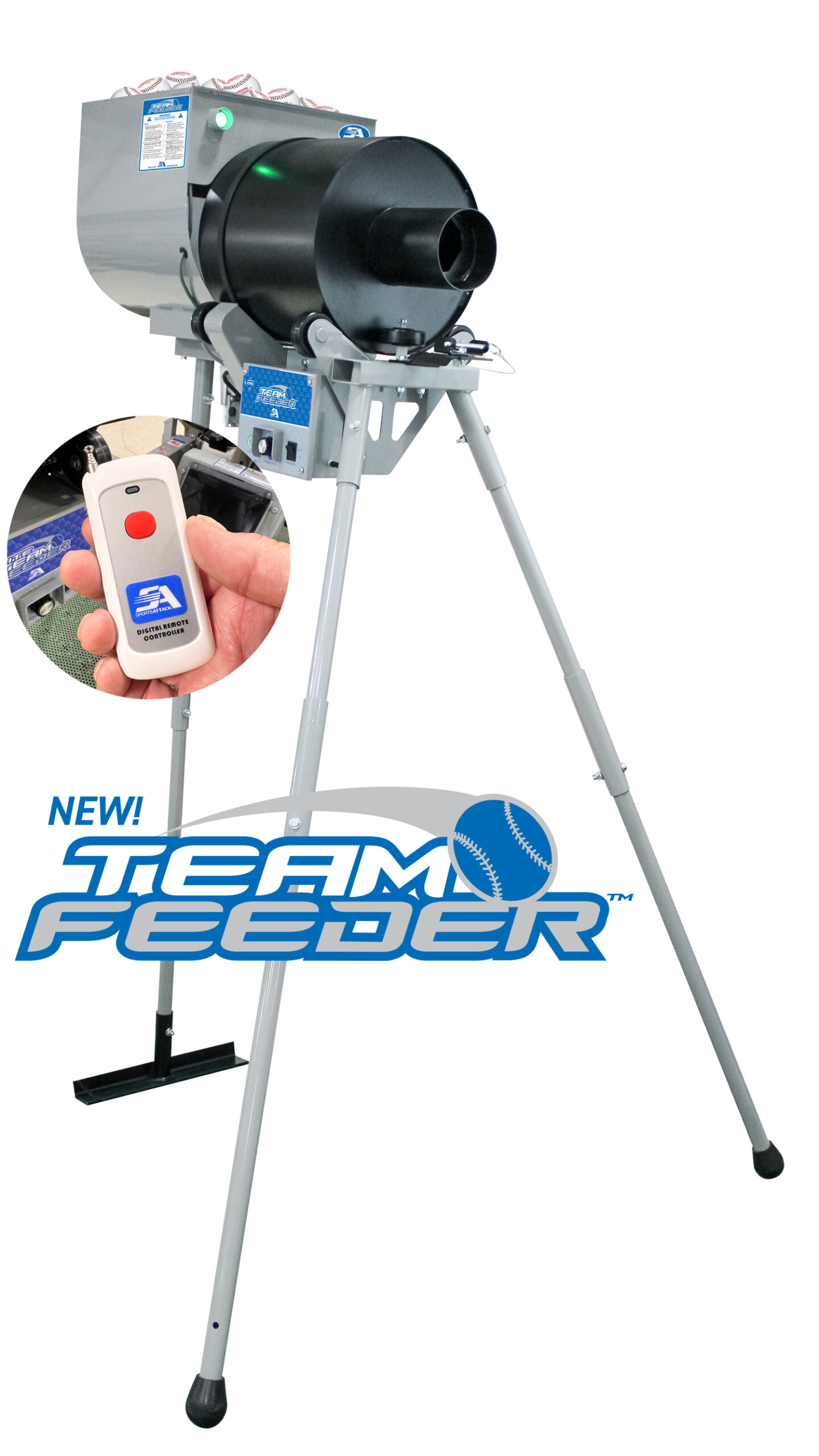 The ever popular 150 ball capacity Team Feeder has a new design plus added features! Will feed a baseball into the Junior Hack Attack at variable speeds (6 to12 seconds or so) for continuous hitting time of 20 minutes.